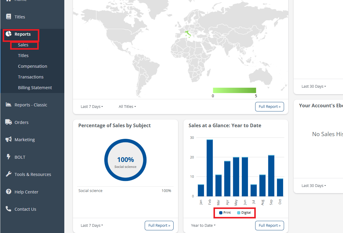 Print sales and digital sales are displayed separately in each report.