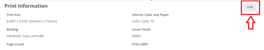 If you update the interior file for a book that affects the way your book is printed, you may need to submit a new cover file. For example, if you want to change from Standard Color 50 to Premium Color, the weight, and thickness of the paper are different, and the book’s spine width will change. A new cover file with the correct spine width will need to be submitted to accommodate your changes and ensure the best printing results. Please contact support with any changes you would like made to the interior color & paper or the binding of the cover for a book and they will assist.