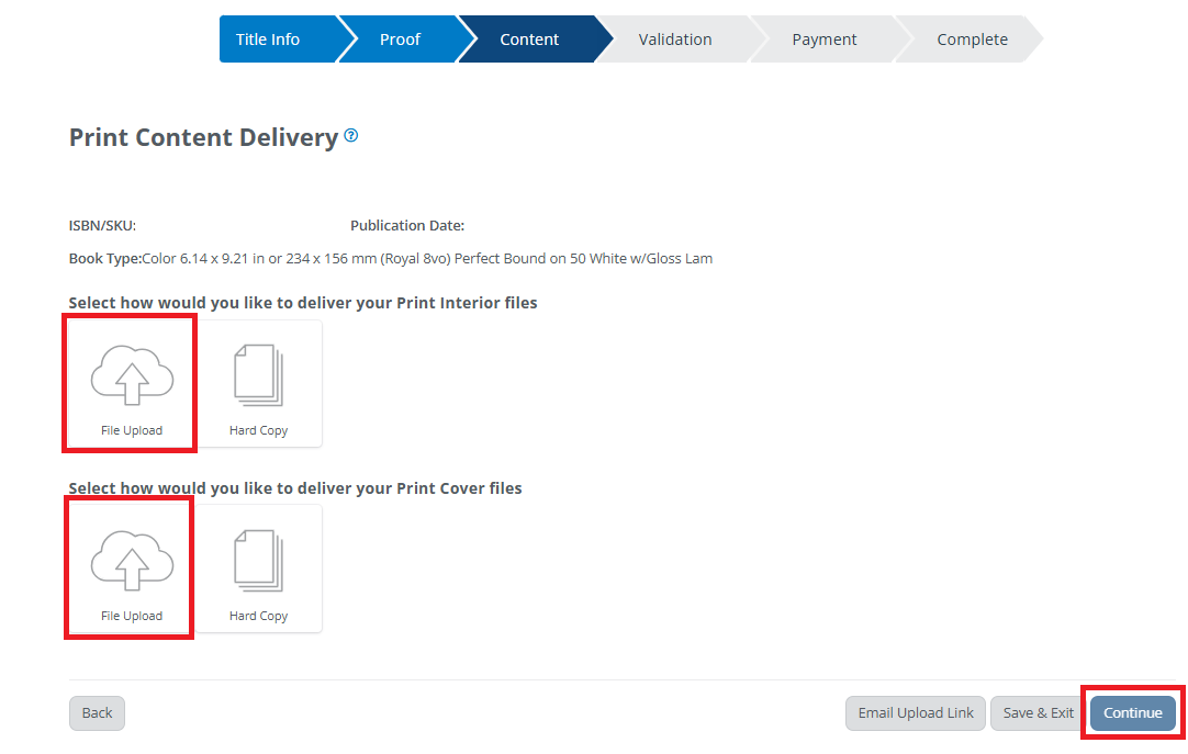 If the files successfully pass the validation process, but premedia finds an issue with the file while processing them, the publisher may need to correct and upload the file again, as a revised file.